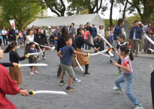 ※スポンジ刀を使用します。顔や腕にあたっても痛くないのでご安心ください