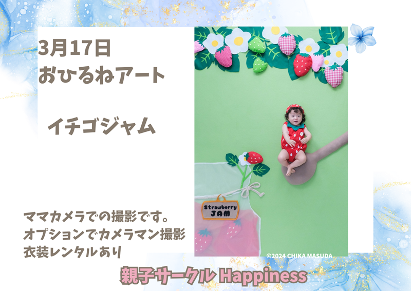 3月は季節の撮影会を開催します!おひるねアート(いちごジャム)・フォトブース(ナチュラルブース)それぞれご用意いたします。