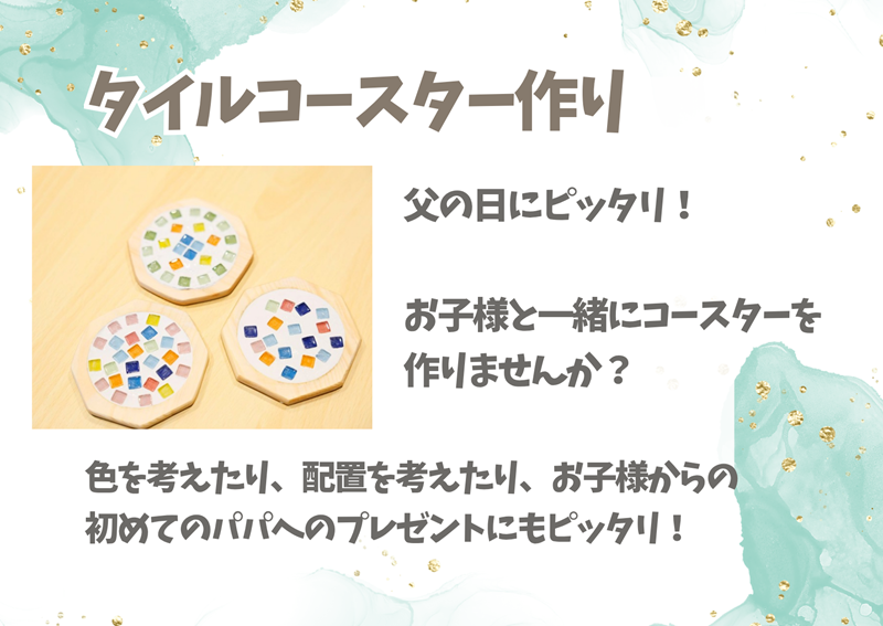 親子で楽しく参加できる親子サークル♡Happiness!5月は季節の制作会「タイルコースター作り」♪